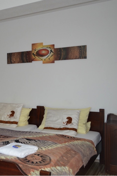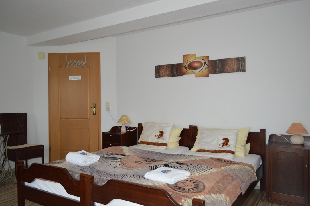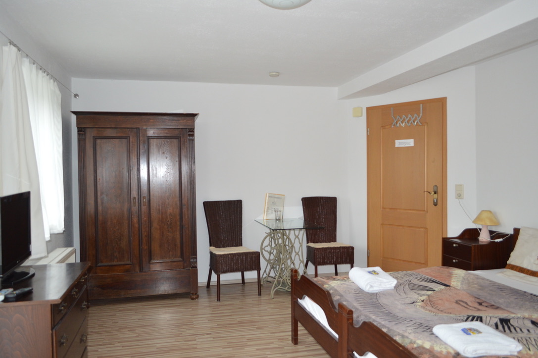 großes Doppelzimmer mit 2 Betten, Dusch-WC und separater Küche.