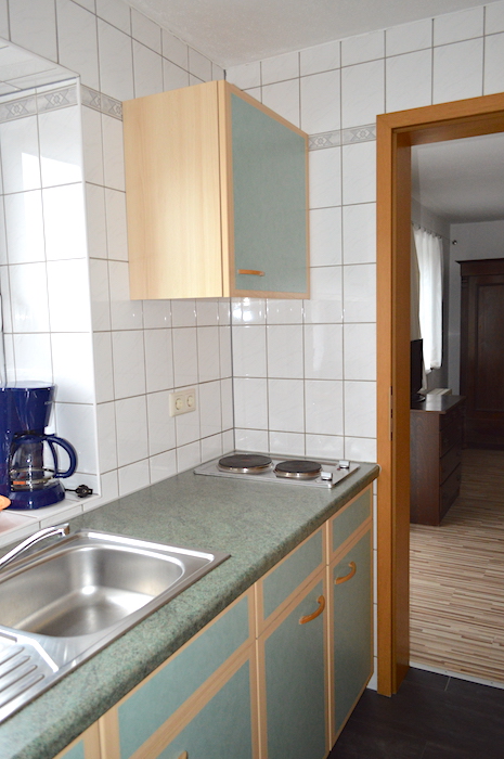 großes Doppelzimmer mit 1 SZ, Dusch-WC, Küche, Terrasse
