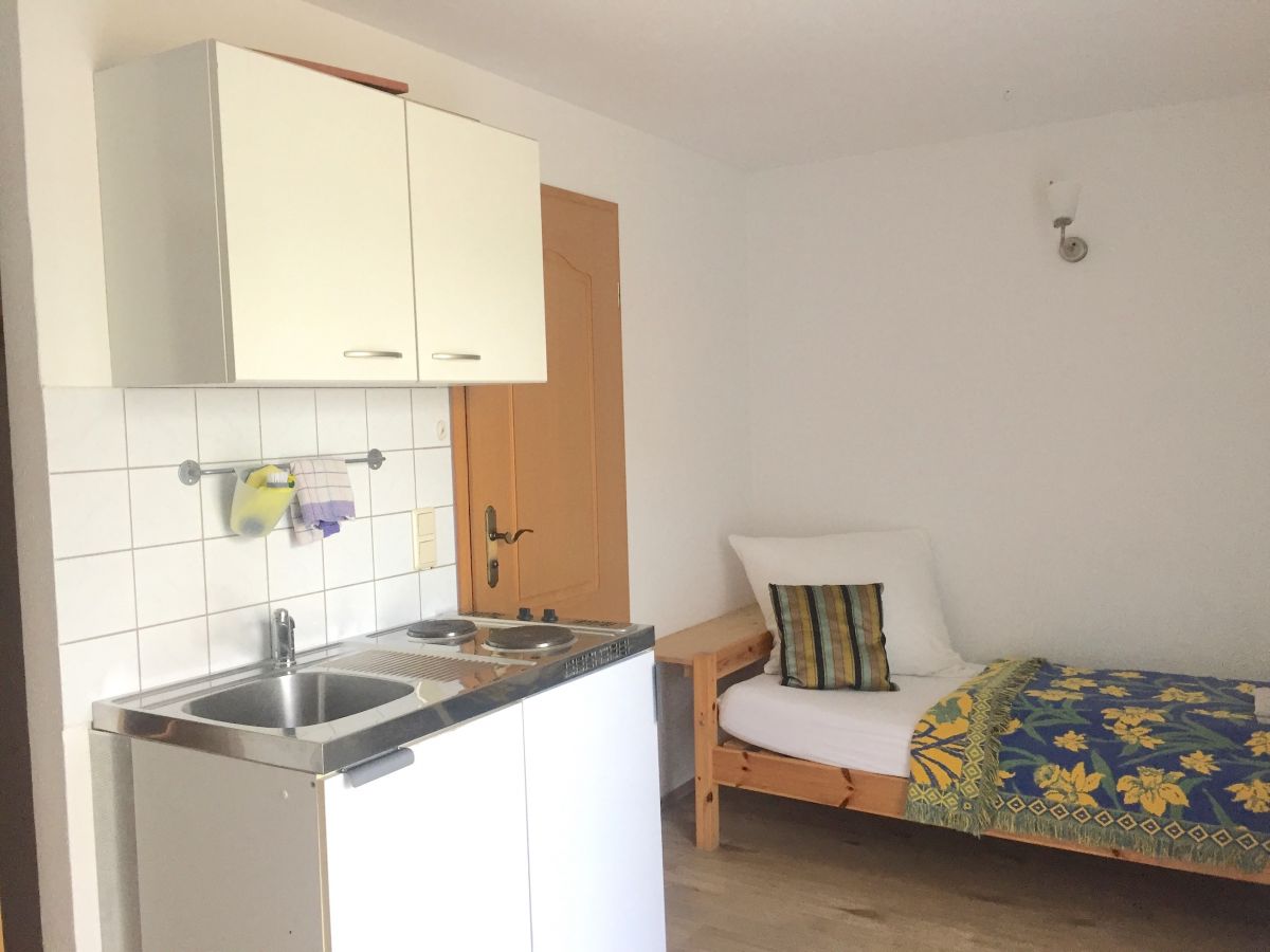 kleines Doppelzimmer mit 1 SZ, Küchenzeile, Dusch-WC, Terasse