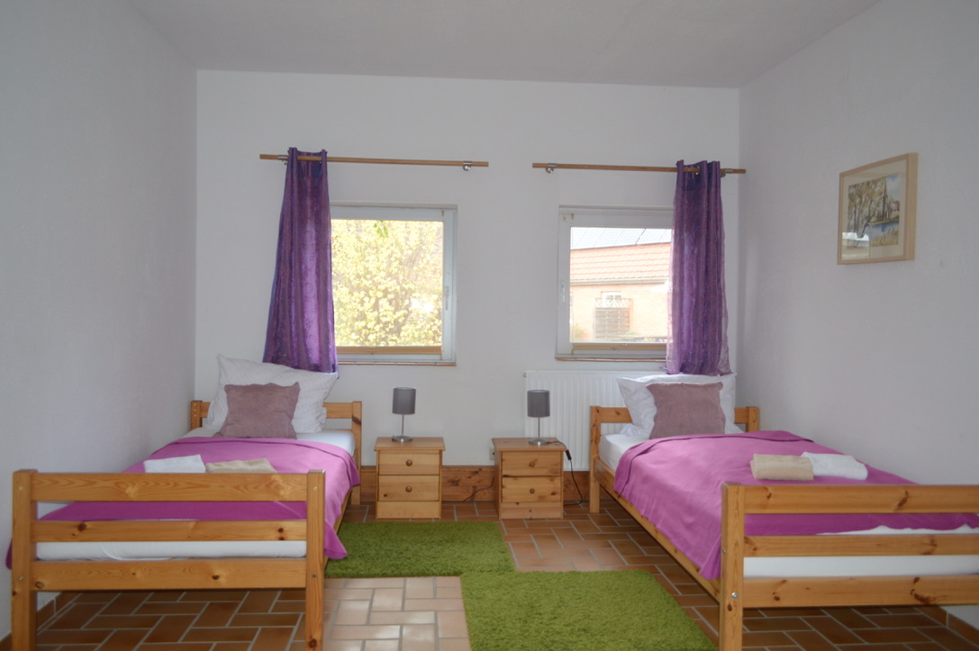 Doppelzimmer mit 2 Einzelbetten ohne Küche aber mit Kühlschrank, Wasserkocher, Kaffeemaschine.